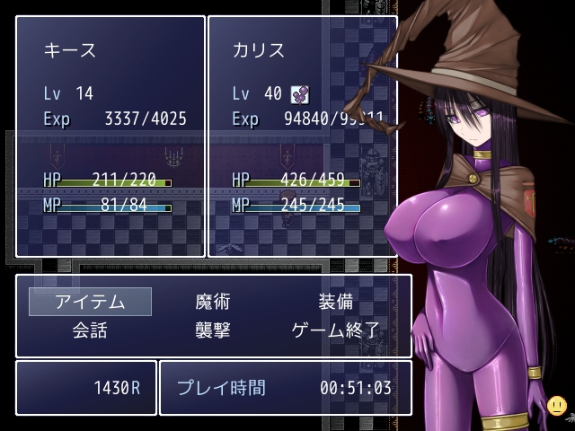 カリスは自動戦闘で、初期状態だと主人公より二倍以上の速度でガンガン敵を殺します。