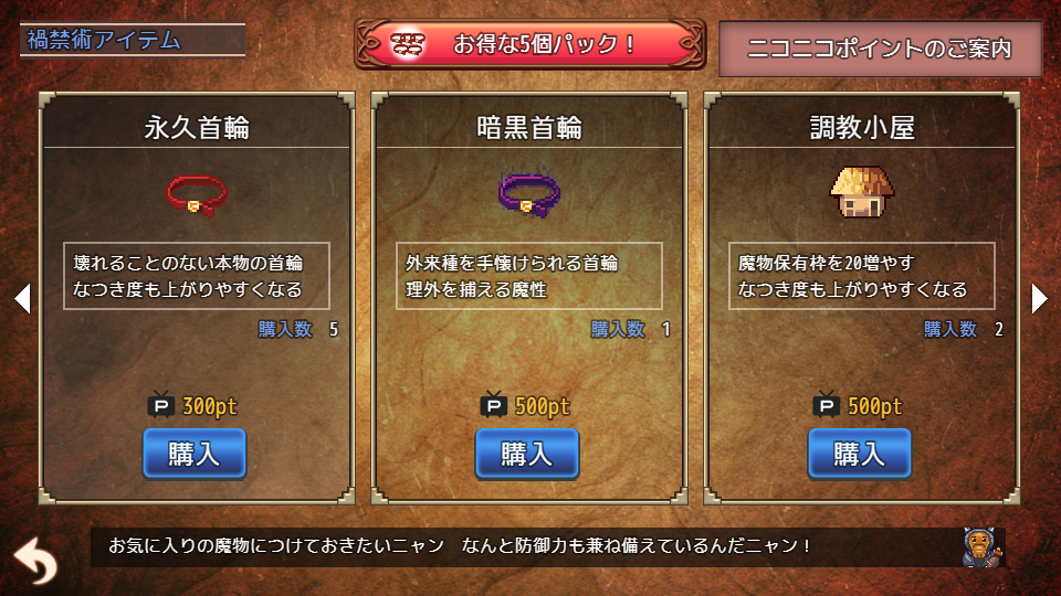 そういうわけで、本作は「魔物収集」を軸とし、その魔物を「保護」したり、また「保有枠」を拡げるアイテムを課金商品としました。